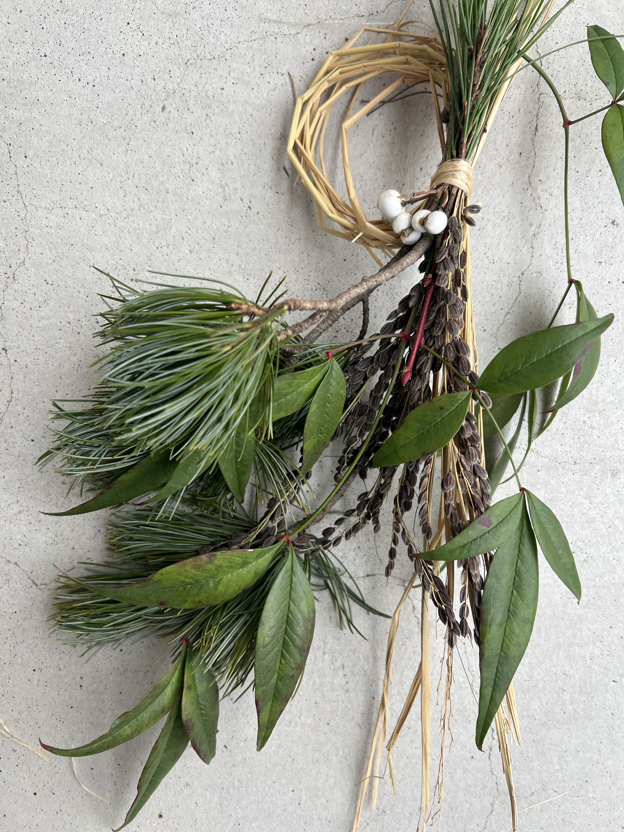 藁・稲穂・五葉松・ネジキ・ナンキンハゼ・南天の葉