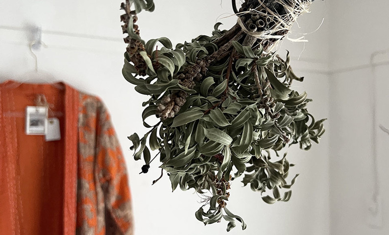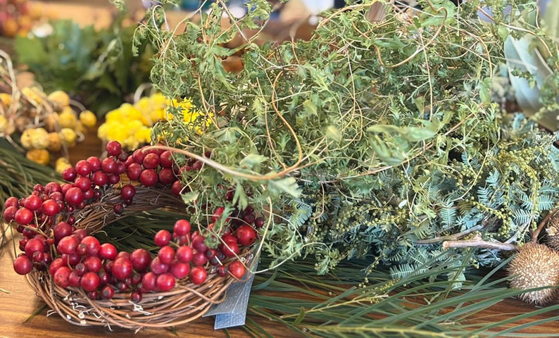 自然の表情をそのまま束ねたドライ植物を使ったリースやバンドル(束)。